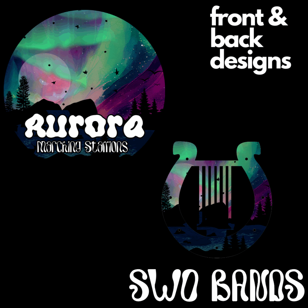 SWO High School Marching Band T-shirts: As the creative mind behind the annual Marching Band T-shirts design. I thrive on each new theme given to me. For the 2022-2023 school year, “Let There Be Light” was the inspiration, and from my brain, the design flowed effortlessly. The resulting artwork captured the essence of the theme perfectly. Moving on to the 2023-2024 school year, “Aurora” took center stage, and I once again let my imagination run wild, creating captivating designs that beautifully complemented the black t-shirts.